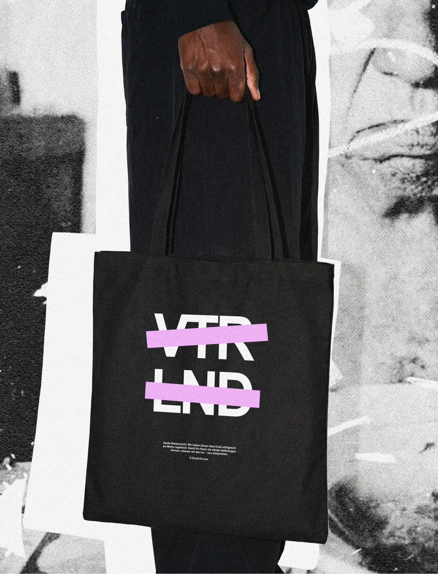 VTLRND (Fatherland) was an absolute bestseller in far-right circles. Was!? Exactly. Because with the “Rights against the Right” campaign we secured the trademark rights to it and had it removed. Now we’re following up with our very own VTRLND merchandise. So that a Nazi can’t keep wearing it. Over 50% of the proceeds go to Noise against Nazis for the registration of new Nazi codes.